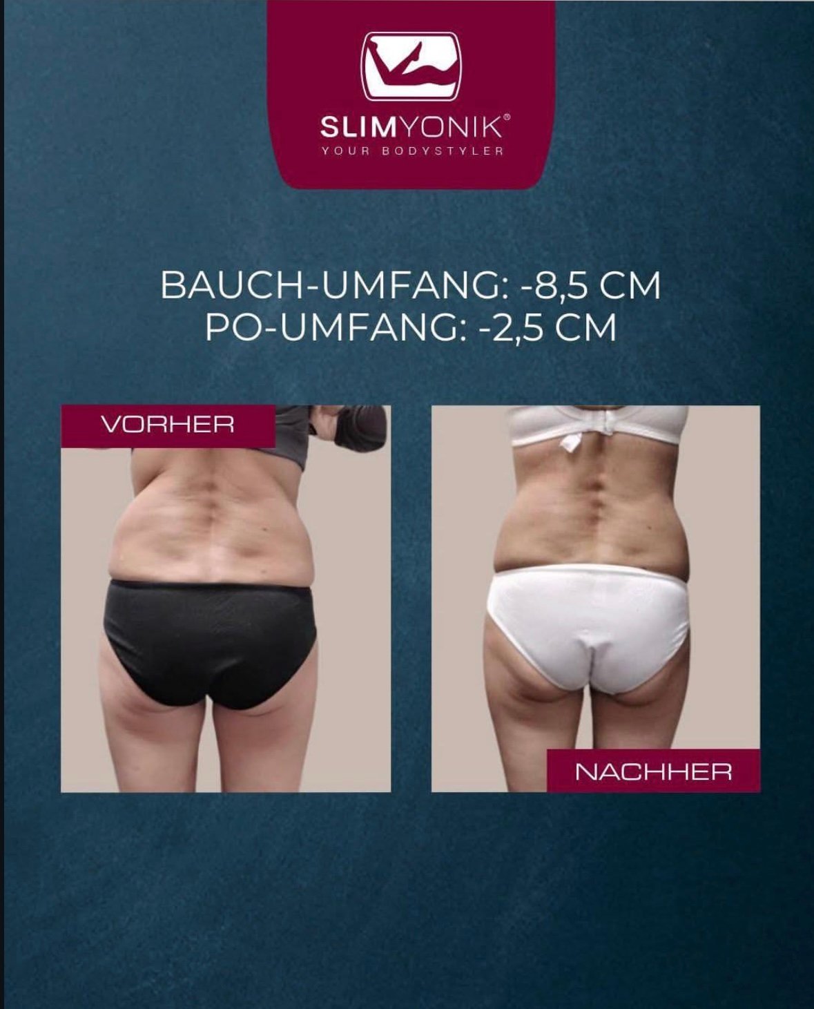 Ob als Begleitung einer Ernährungsumstellung, zur Unterstützung beim Figur- oder Hautbild oder einfach als Wellness-Moment für dich – Slimyonik bietet eine ganzheitliche Behandlung, die Körper und Seele guttut.