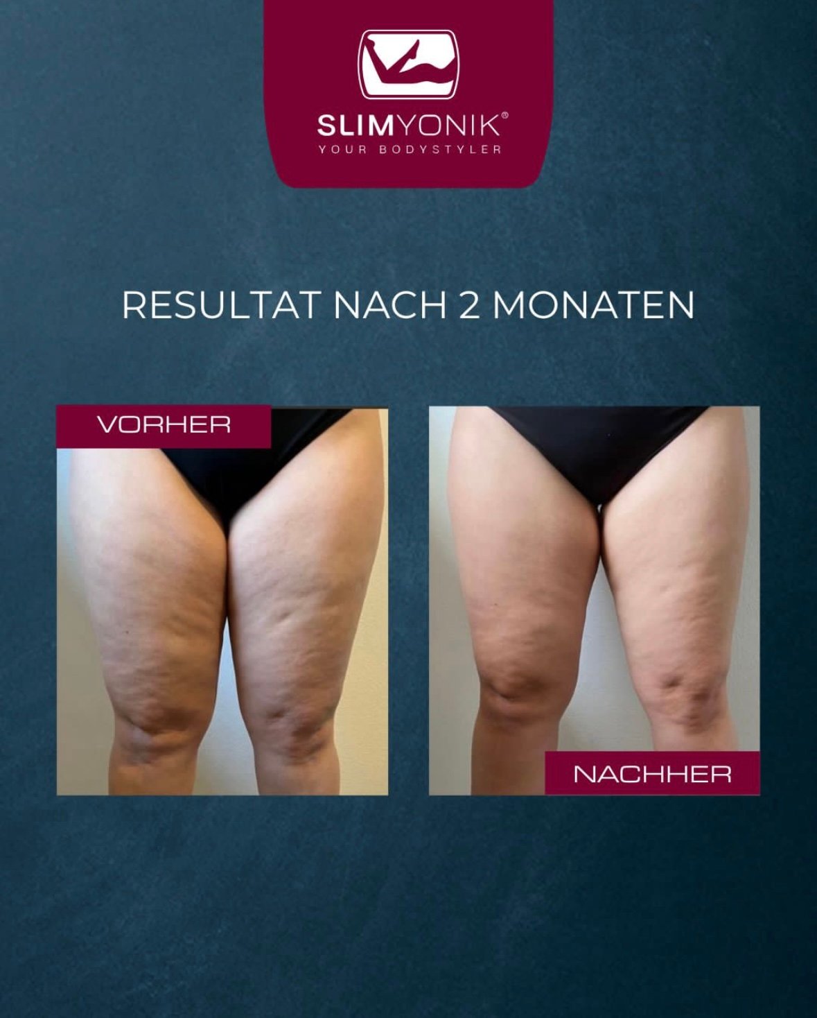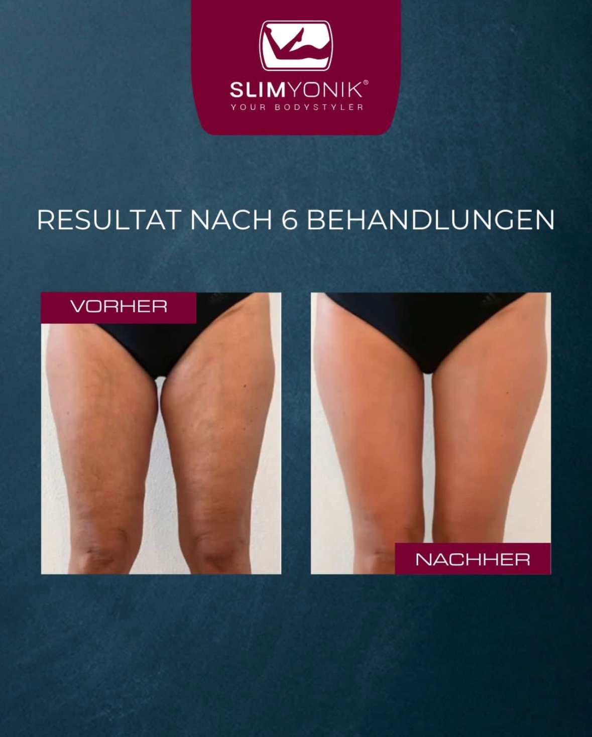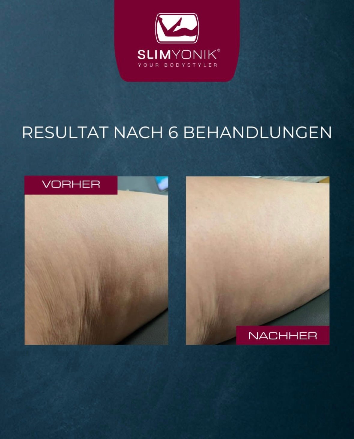 Für sichtbare und nachhaltige Ergebnisse bei normaler Cellulite empfehlen wir die SLIMYONIK®️-Behandlung einmal pro Woche.